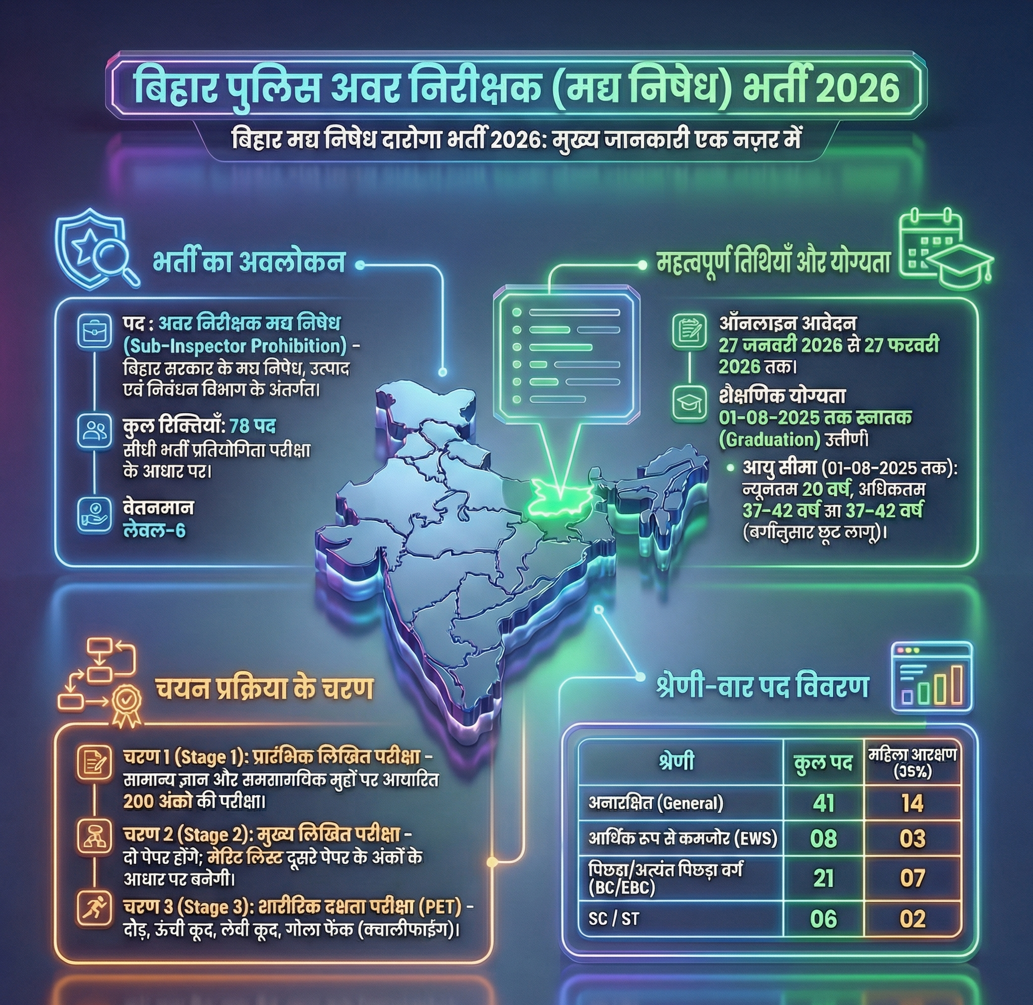 BPSSC बिहार पुलिस मद्य निषेध दारोगा भर्ती 2026: 78 पदों के लिए अधिसूचना जारी, जानें पूरी जानकारी: