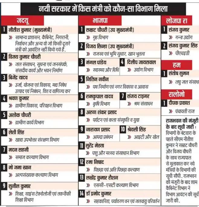 बिहार के मंत्री मंडल में किस मंत्री को कौन सा विभाग मिला है?: