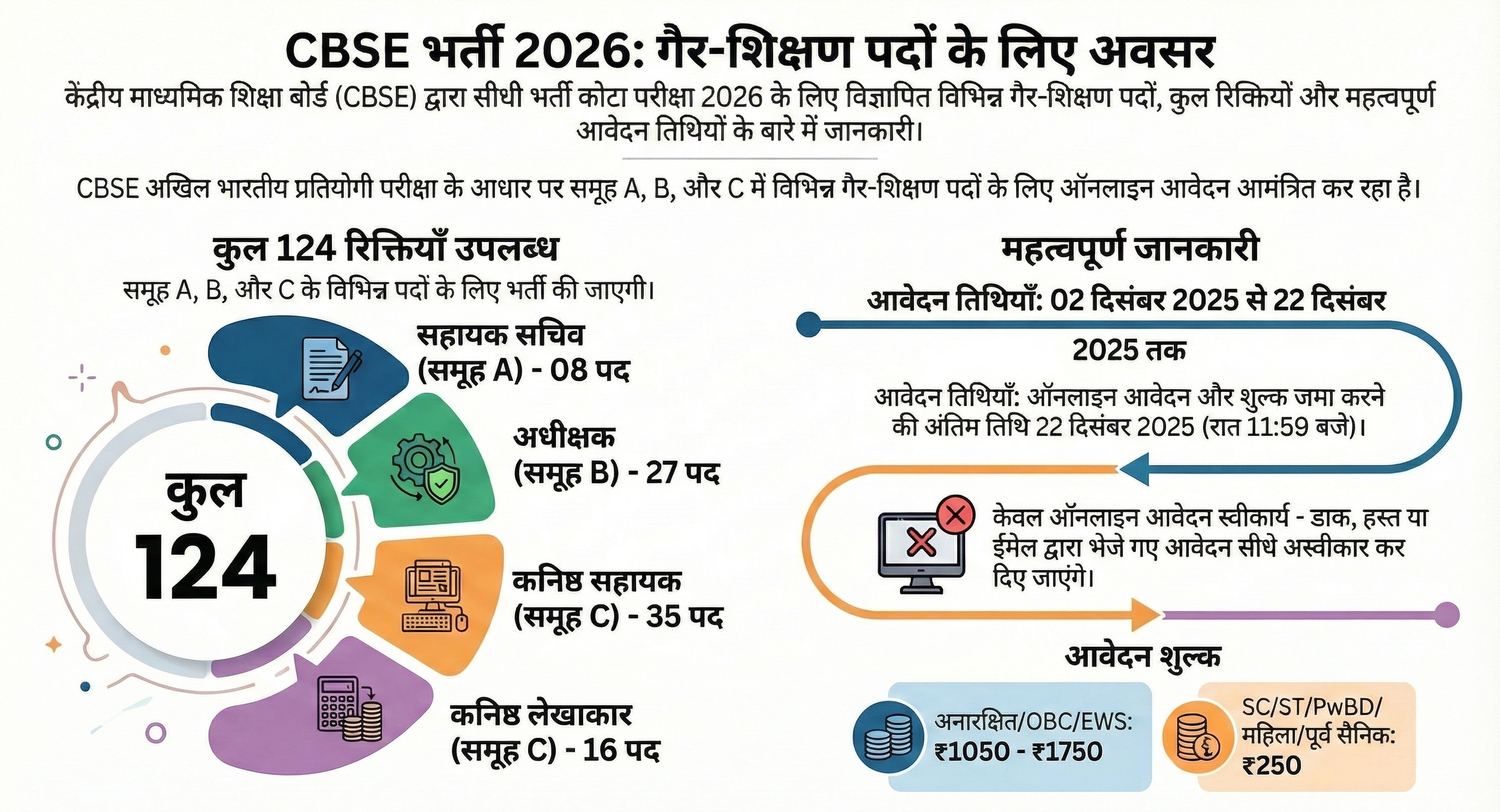 CBSE नॉन-टीचिंग भर्ती 2026: मुख्य नियम एवं जानकारी